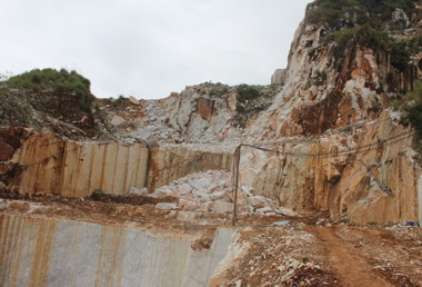 圖1沿著這樣的山路,4驅的汽車約20分鐘,到達大理石礦山的開采點。
