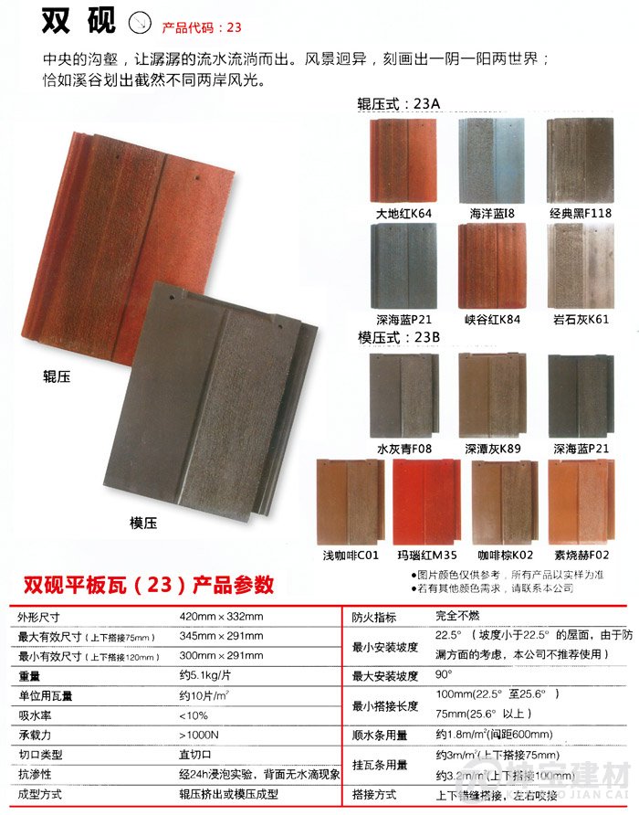 舊式磚瓦窯的復雜工程施工,不管從工程施工高效率還是從全面性上面沒法再融入當代磚瓦窯的發展趨向。新型瓦材商品的不斷創新,促使工程施工高效率和竣工以后的全面性都很好。而水泥瓦應當說成如今瓦產品之中的引領者。將來的屋面裝飾建材將是新式屋面瓦水泥瓦的天地,伴隨著國家平改坡工程項目的日漸推動,ASA水泥瓦的優勢也愈來愈突顯,水泥瓦推動屋面裝飾建材為期不遠。水泥瓦應用高新科技有機化學化工技術研發而成的新式建筑原材料,具備重量較輕、抗壓強度大、防潮防水、防 腐阻燃性、隔音降噪隔熱保溫等多種多樣優質特點,廣泛適用經濟開發區平改坡、農貿批發市場、大型商場、居民小區、新農村規劃住戶別墅洋房、雨蓬、遮陽蓬、仿古式建筑等。強力的耐老化,水泥瓦采用高耐侯改性材料環氧樹脂(ASA)做為瓦的表層原材料。這類高耐老化環氧樹脂特別適合室外應用。在地理環境中具備超乎尋常的使用性能,它即便長期性曝露于紫外光、體內濕氣、熱、寒和沖擊性下,仍能維持色調和物理學性能的可靠性。