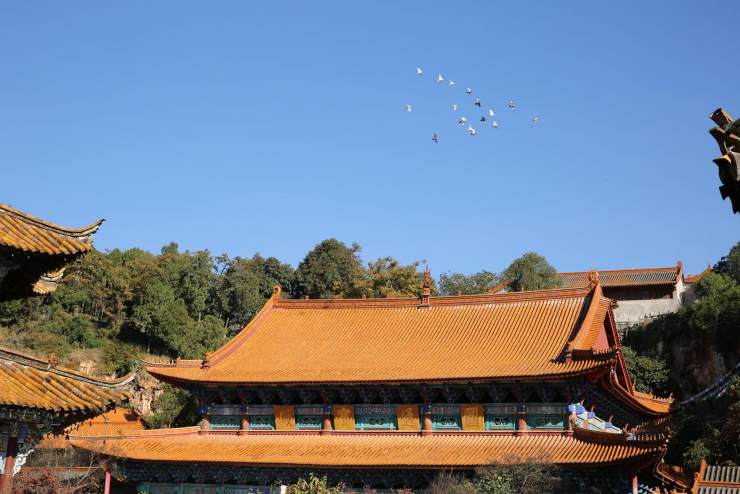 琉璃瓦身段尊貴,現身于帝王天家、寺廟?;食窍喔o城墻一角的琉璃瓦亭,歷經百年雨霜磨礪依然閃耀康熙帝賜給股肱之臣的無上榮光。彩云之南澄碧天空下一群白鴿飛過黃色琉璃瓦的屋頂,給莊嚴的佛堂添了隨和。蜚聲四海的晉祠藍灰相間的大殿頂,冷靜中素麗。