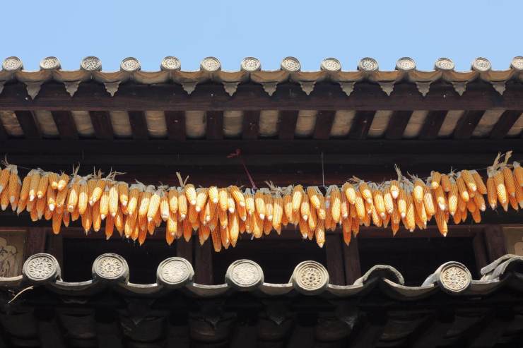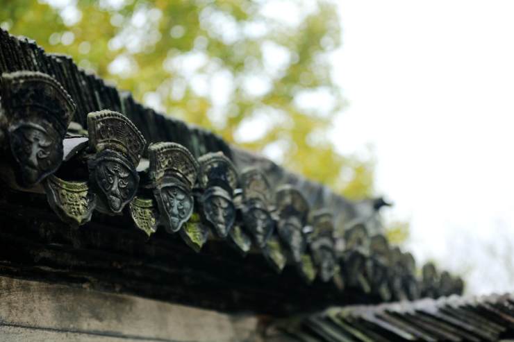 單說用量多寡,小青瓦當屬老大,她還有個美麗的別名蝴蝶瓦,又名陰陽瓦,廣泛應用在屋宇建筑上,江南江北身影重重。江西婺源人家屋頂黛色板瓦,因著大塊艷麗秋色,華美跳躍。六和塔下房屋間逸出一叢芭蕉,不知是瓦因著芭蕉清新,還是芭蕉因著青瓦含蓄。秋至皖南,人家的房頂落葉覆蓋,雨過天晴水汽縈繞恍惚出水墨顏色。靜升王家單色青瓦覆頂,不著異色卻整整當得起民間故宮名頭。甪直古鎮青磚小瓦馬頭墻,隱含著書香門第的典雅。河街并行的婉約水鄉,那屋瓦也文靜靈秀款款深情。年幼時膠東老家的青黛小瓦,比著當下張揚的大紅瓦多了古遠深邃跟幽謐。