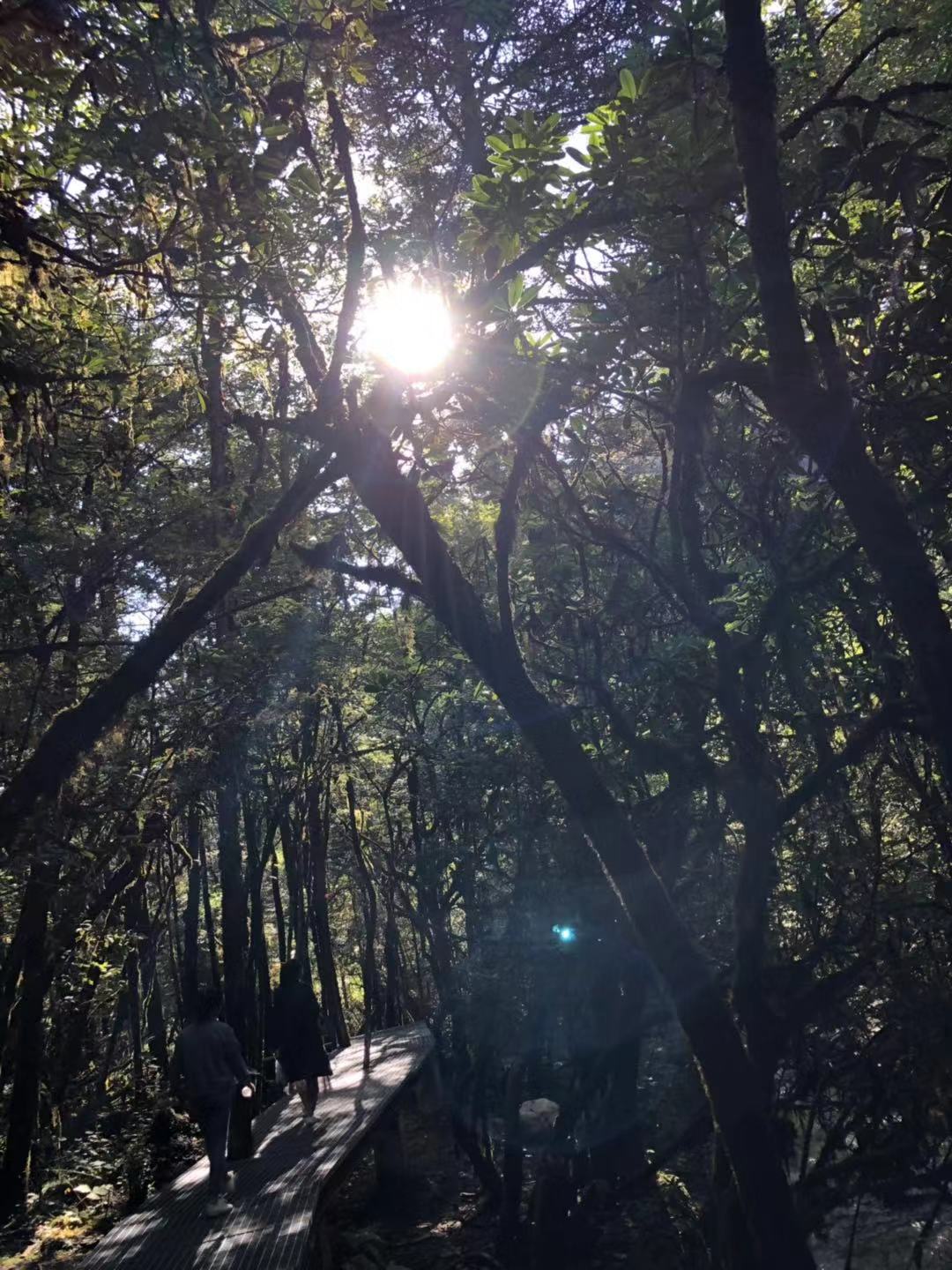 隨后乘觀光車經一號營地、二號營地、穿越原始森林,沿途欣賞河谷原始森林風光,感受 “一山觀四季、十里不同天”的氣象變遷。