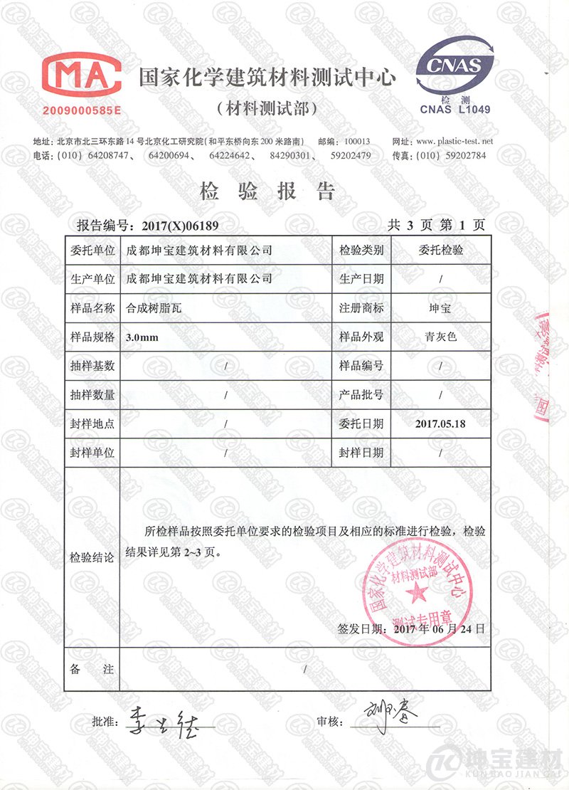 成都坤寶建筑材料有限公司一直堅持走“綠色、低碳、環保、節能”宗旨,致力在各界政府行業協會的幫助下,成為315誠信品牌單位,是成都坤寶建筑材料有限公司的榮耀,也是““坤寶合成樹脂瓦”品牌的見證。