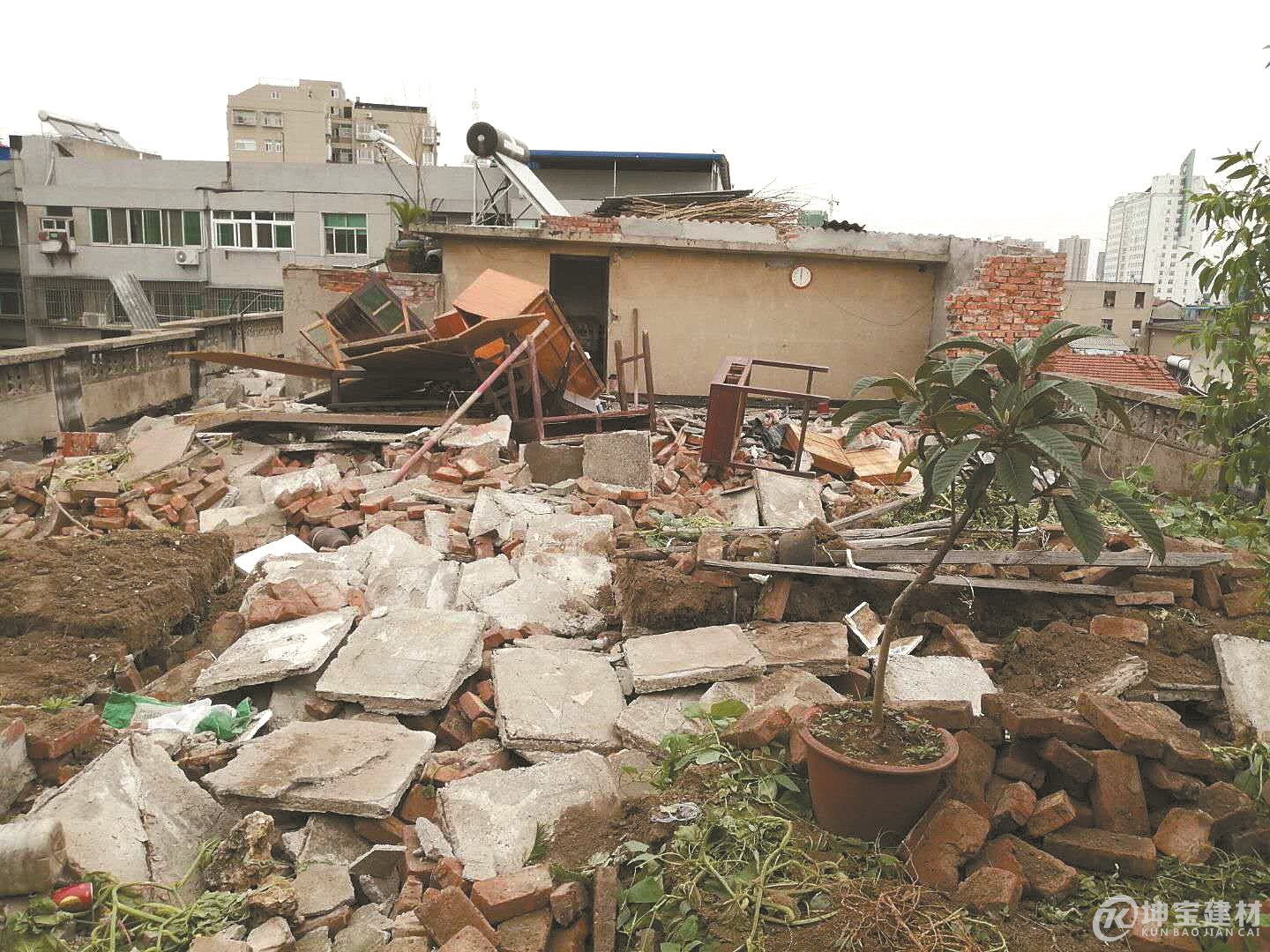 市汽運小區是一棟4個單元的7層老式樓房,住有40戶居民。該小區樓頂是開放式平臺,沒有任何遮擋物,部分居民將廢棄物隨意丟棄在上面。天長日久,年久失修,房屋樓頂老化,水泥面出現裂縫,一遇下雨就滲水嚴重。居民李合山一家住在7樓,多年來深受其害。