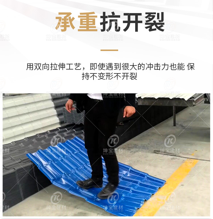 合成樹脂瓦正以快速度發展成為現代化屋面瓦產品中很優秀的一個產品,如何把產品更進一步的升級優化,在經過樹脂瓦廠家坤寶匠人的專研和專注實驗后,工字紋理合成樹脂瓦產品以技術和品質為保證誕生了,產品的實際質量和性能得到進一步提升,同時也以優秀的裝飾性能為用戶帶來更高質的使用享受。